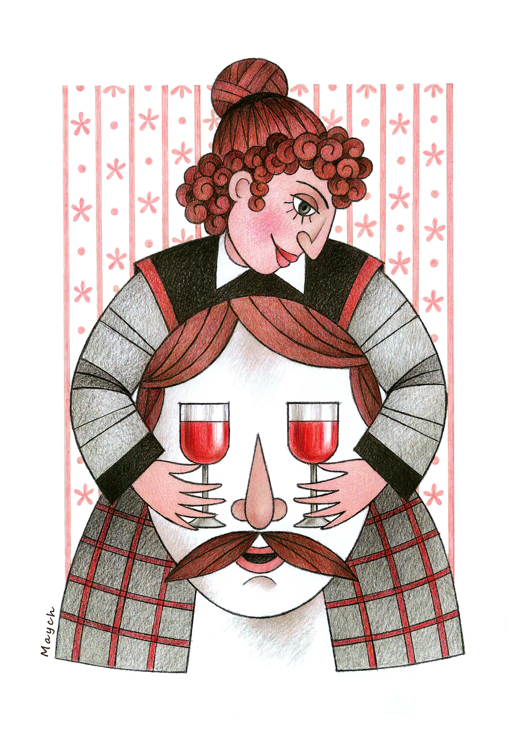 Description: Woman, man, wine, love is blind
